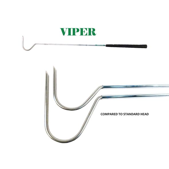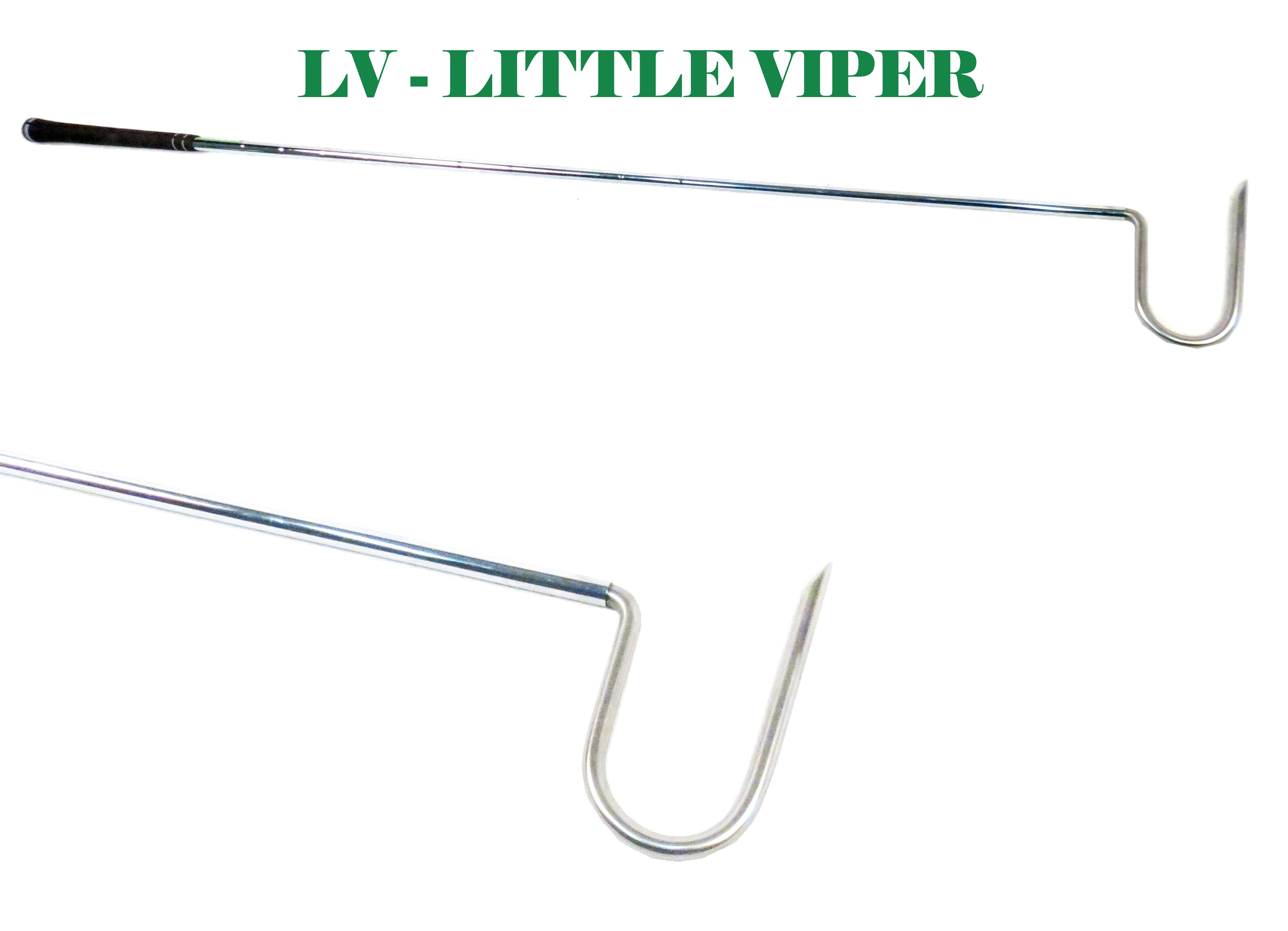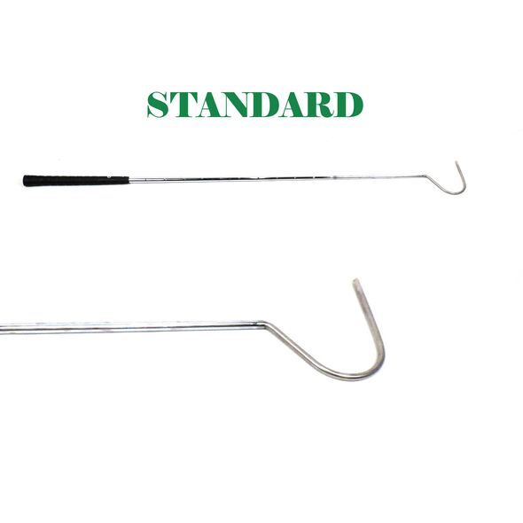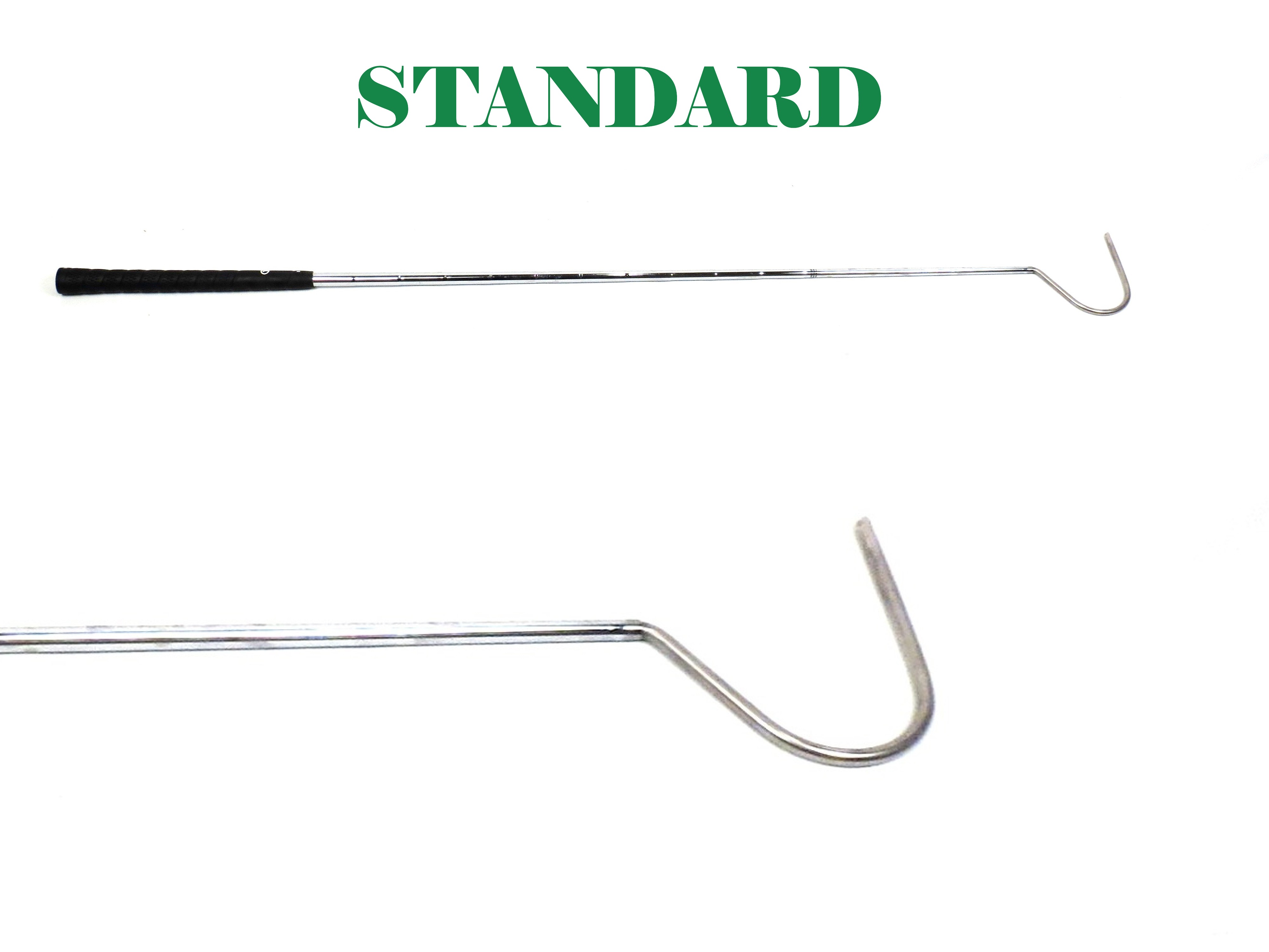 Model 319 is our standard snake hook that measures 44" long. The hook is made from aircraft grade, 9/32" - Stainless Steel and has a 3 ½" opening. The shaft is lightweight, stainless steel and features a golf club style grip.